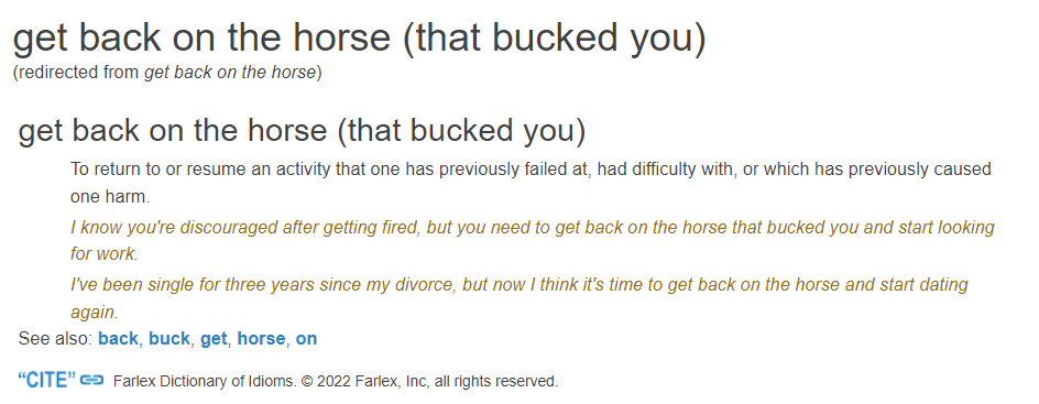 But: To return to or resume an activity that one has previously failed at, had difficulty with, or which has previously caused one harm.