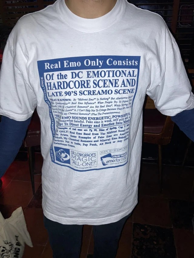 Seeing and working with this text over the past few weeks has had a strange effect on my brain where the text feels both like it has lost meaning and like it is inscribed on the inside of my skull. I can no longer listen to emo or emo-adjacent music without my mind flicking back to the real emo/fake emo dichotomy. I’m ok tho promise x